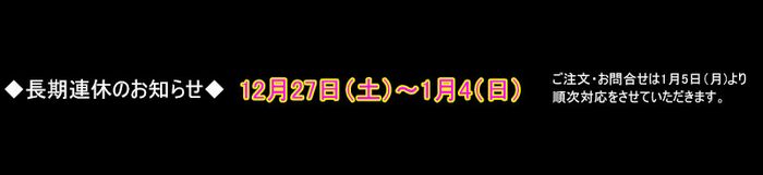 ◆冬季休業のお知らせ ◆ 12月27日(土曜日)~1月4日(日曜日)まで