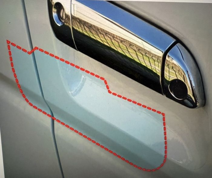ドアハンドル周りの爪等によるひっかき傷キズから守るプロテクションフィルム(クリア)。