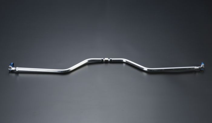 リヤシートベルトの左右をつなぎ剛性を高めます。リヤハッチバック車等リヤの開口部が大きい車両は効果てきめんです。専用ブラケットを製作し、確実に応力がかかるようにしました。シャフトは専用の肉厚特殊合金を使用、エンド部テーパー&バフ仕上げです。スクエアタイプとストレートタイプの2種類設定