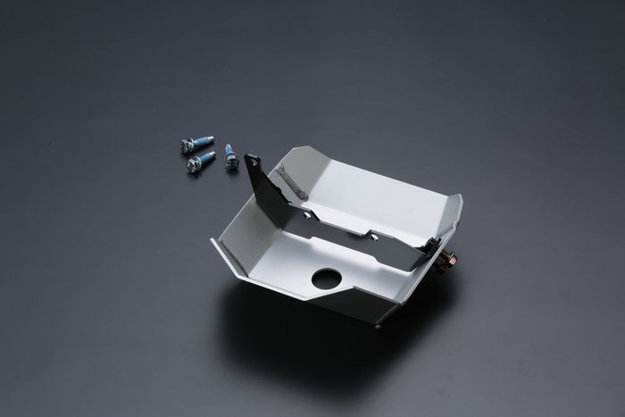 プレートをボディ下側に回りこませるような複雑な形状とする事で、強度を向上させ下側からのダメージにも対応。
