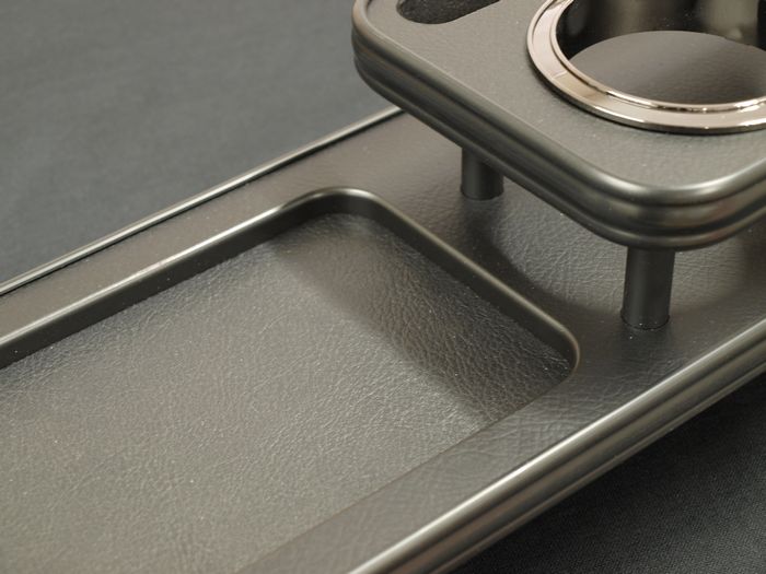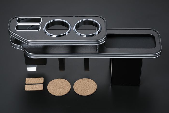 ドリンクやちょっとした物の置き場に困ってしまう2列目シートに、見た目と利便性を考えた商品です。「ドリンクホルダー」や「スマートフォンフォルダー」はもちろん、後方には彫り込みトレイが付いているので、小物入れとして大活躍 日本製。