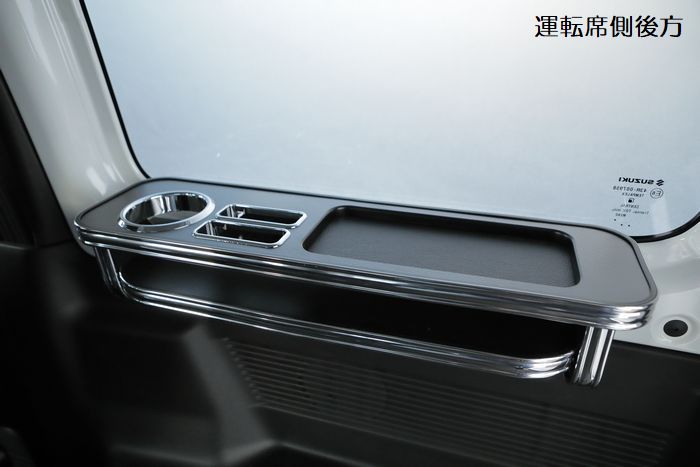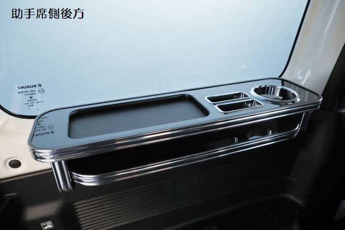 JB64ジムニーJB74ジムニーシエラ専用 サイドテーブル(セカンドシート用)は、2列目に乗られる方のことを考え抜かれた、同乗者に喜んでもらえる逸品。